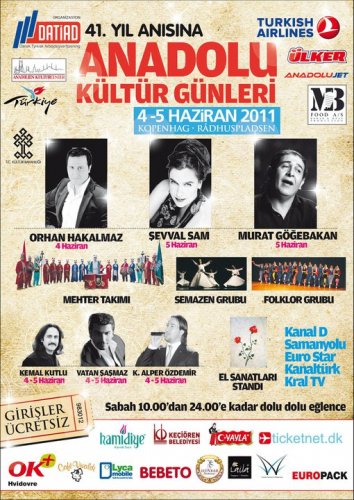 Şevval Sam, Murat Göğebakan, Kasım Alper Özdemir siir, Vatan Şaşmaz, Kemal Kutlu, Djadem, Mehter, Dervish (Semazen), Halk Oyunları, el sanatları.